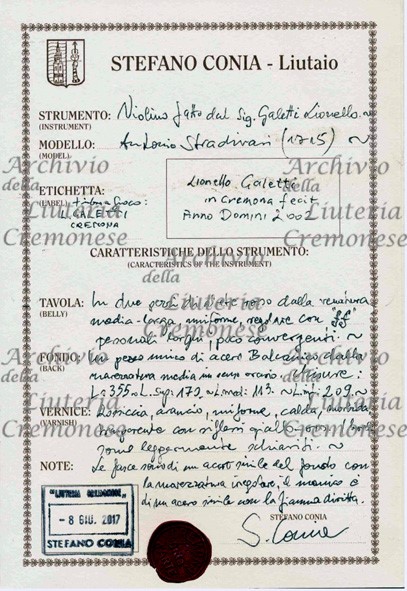 - Lionello Galetti / in Cremona fecit / anno domini 2002 (firmata)
