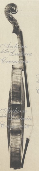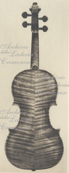 Fondo in due pezzi d'acero riccio a marezzatura larga, incollati a spina di pesce con apice in basso.