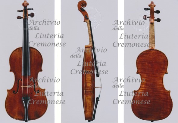 Strumento composito, con dimensione alterata nella parti superiori, già attribuito a Nicolò Amati, la cui tavola armonica è un rimpiazzo Nicolò Amati (1650 c.). Il fondo, in due pezzi d'acero riccio a marezzatura media discendente verso sinistra con all'interno l'iscrizione a inchiostro: "Tononi ... allievo di ...", e le fasce sono assegnate ai fratelli Antonio e Gerolamo Amati. La testa d'epoca posteriore, sarebbe lavoro italiano del XVIII secolo.