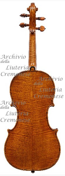 Strumento ritenuto costruito nella bottega di Nicolò Amati. Fondo in due pezzi d'acero riccio a marezzatura stretta, incollati a spina di pesce con vertice in basso. Testa attribuita a Francesco Ruggieri.