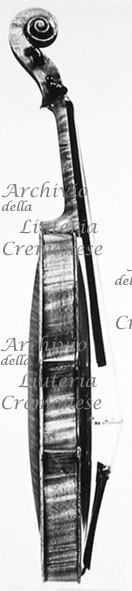 Fondo in un pezzo d'acero riccio a marezzatura media-stretta leggermente discendente verso destra. Vernice arancio-bruna.