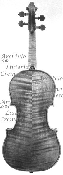 Fondo in due pezzi d'acero riccio a marezzatura larga, incollati a spina di pesce con apice in basso.