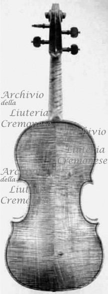 Fondo in due pezzi d'acero riccio a marezzatura stretta discontinua e irregolare quasi orizzontale. Fasce di legno corrispondente a quello del fondo. Vernice rossa-bruna.