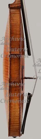 Fondo in due pezzi d'acero riccio a marezzatura media, incollati a spina di pesce con vertice in alto.