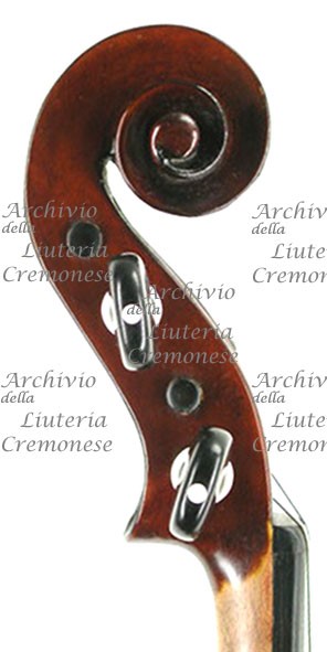 Fondo in due pezzi d'acero a debole marezzatura larga, incollati a spina di pesce con vertice in basso.