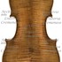 Tavola rmonica d'abete a vena motlo stretta al centro. Fondo in due pezzi d'acero riccio a marezzatura stretta, incollati a leggera spina di pesce con apice in alto. Vernice gialla-dorata.